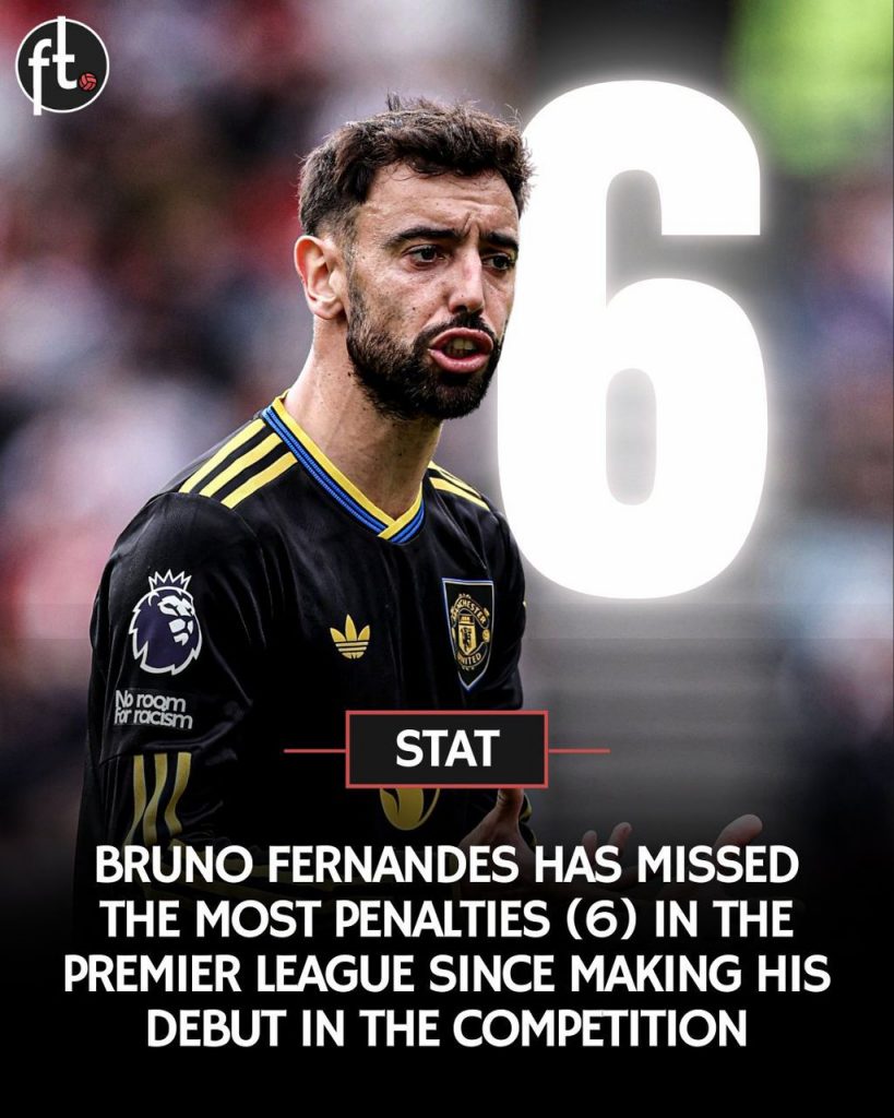 Story: ខ្សែបម្រើ Bruno Fernandes របស់ Man UTD បានខកខានបាល់ប៉េណាល់ទីនៅ Premier League ច្រើនជាងកីឡាករដទៃ ចាប់តាំងពីការបង្ហាញខ្លួនលើកដំបូងរបស់គាត់ ពោលគឺចំនួន ៦ដងមកហើយ។