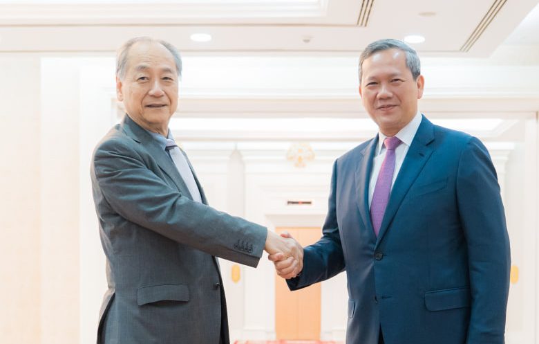 (ភ្នំពេញ)៖ នៅព្រឹកថ្ងៃអង្គារ ទី១១ ខែវិច្ឆិកា ឆ្នាំ២០២៥នេះ សម្តេចមហាបវរធិបតី ហ៊ុន ម៉ាណែត នាយករដ្ឋមន្ត្រីកម្ពុជា បានអនុញ្ញាតឱ្យលោក តាកាហាស៊ី ហ្វូមីអាគី (TAKAHASHI Fumiaki) ប្រធានសមាគមជប៉ុន-កម្ពុជា ដឹកនាំប្រតិភូសមាគមជប៉ុន-កម្ពុជា ដែលសុទ្ធសឹងជាអ្នកវិនិយោគរបស់ជប៉ុន ចូលជួបសម្តែងការគួរសម និងពិភាក្សាការងារនៅវិមានសន្តិភាព៕