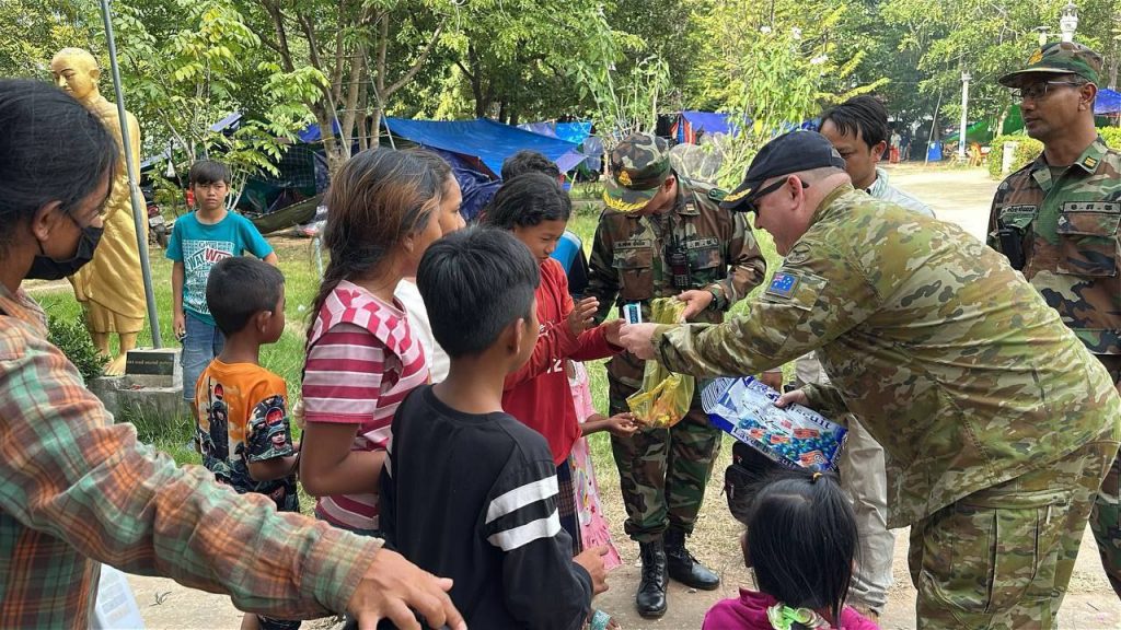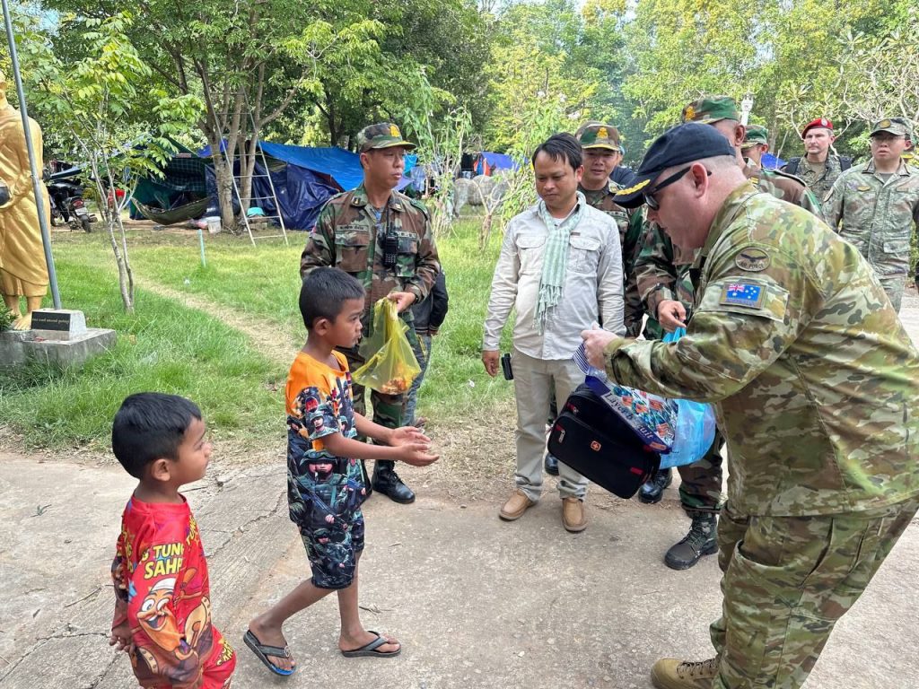 នៅរសៀលថ្ងៃសៅរ៍ ទី២២ ខែវិច្ឆិកា ឆ្នាំ២០២៥ វេលាម៉ោង ១៤:១០នាទី ក្រុមការងារសម្របសម្រួលអ្នកសង្កេតការណ៍របស់ក្រសួងការពារជាតិ នៃព្រះរាជាណាចក្រកម្ពុជា (CLG) បានសម្របសម្រួលជូនក្រុមអនុព័ន្ធយោធាបរទេស ប្រចាំព្រះរាជាណាចក្រកម្ពុជា (Military Attaché Corps of Phnom Penh – MACPP) ចុះទៅសួរសុខទុក្ខដល់ប្រជាជនស្លូតត្រង់កម្ពុជាដែលជាជនភៀសសឹក ស្នាក់នៅបណ្តោះអាសន្ននៅវត្តចាន់ស៊ីសាមគ្គីរតនារាម ស្ថិតនៅភូមិកូបកើត ឃុំកូប ស្រុកអូរជ្រៅ ខេត្តបន្ទាយមានជ័យ ។