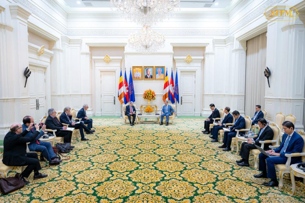 សម្ដេចបវរធិបតី បានសម្ដែងនូវសេចក្ដីសោមនស្សរីករាយ និងស្វាគមន៍យ៉ាងកក់ក្ដៅចំពោះដំណើរទស្សនកិច្ចរបស់ឯកឧត្តមរដ្ឋមន្ត្រី និងគណៈប្រតិភូមកកម្ពុជានាពេលនេះ និងបានគូសបញ្ជាក់ថា ដំណើរទស្សនកិច្ចនេះនឹងចូលរួមចំណែកដល់ការពង្រឹង និងពង្រីកកិច្ចសហប្រតិបត្តិការទ្វេភាគីឱ្យកាន់តែខ្លាំងក្លាថែមទៀត។ សម្ដេចបវរធិបតី បានថ្លែងអំណរគុណចំពោះរដ្ឋាភិបាល និងប្រជាជននូវែលសេឡង់ ដែលបានគាំទ្រដល់ដំណើរការស្វែងរកសុខសន្ដិភាពនៅកម្ពុជា និងបានចូលរួមចំណែកដល់ការអភិវឌ្ឍសង្គម-សេដ្ឋកិច្ចនៅកម្ពុជា ចាប់តាំងពីទសវត្សរ៍ ឆ្នាំ១៩៩០ រហូតមកដល់ពេលបច្ចុប្បន្ន។ សម្ដេចបវរធិបតី ក៏បានស្វាគមន៍ចំពោះលទ្ធផលជាផ្លែផ្កានៃកិច្ចពិគ្រោះយោបល់លើកទី៣ រវាងក្រសួងការបរទេសនៃប្រទេសទាំងពីរ ដែលបានរៀបចំឡើងកាលពីខែសីហា កន្លងទៅ និងលើកទឹកចិត្តដល់ក្រសួងការបរទេសនៃប្រទេសទាំងពីរបន្តនូវយន្តការនេះឱ្យបានទៀងទាត់ ដោយ សម្ដេចបវរធិបតី ជឿជាក់ថា យន្តការនេះនឹងរួមចំណែកកាន់តែច្រើន ដល់ការពង្រឹង និងពង្រីកកិច្ចសហ-ប្រតិបត្តិការទ្វេភាគីឱ្យកាន់តែល្អប្រសើរ ដោយមិនត្រឹមតែភ្ជាប់ទំនាក់ទំនងរវាងរដ្ឋាភិបាល និងរដ្ឋាភិបាលប៉ុណ្ណោះទេ ថែមទាំងពង្រីកការតភ្ជាប់រវាងវិស័យឯកជន និងឯកជន ព្រមទាំងរវាងប្រជាជន និងប្រជាជន ថែមទៀតផង។ ទន្ទឹមនឹងនេះ សម្ដេចបវរធិបតី បានជម្រាបជូនឯកឧត្តមរដ្ឋមន្ត្រីថា ពាក់ព័ន្ធនឹងការពង្រីកការភ្ជាប់ទំនាក់ទំនងរវាងវិស័យឯកជននេះ, កម្ពុជាក៏បានបង្កើតការិយាល័យតំណាង នៃសភាពាណិជ្ជកម្មកម្ពុជានៅប្រទេសនូវែលសេឡង់ ផងដែរ ក្នុងគោលបំណងពង្រីកនូវកាលានុវត្តភាពការវិនិយោគ និងជំរុញការធ្វើពាណិជ្ជកម្មឱ្យកាន់តែល្អថែមទៀត។