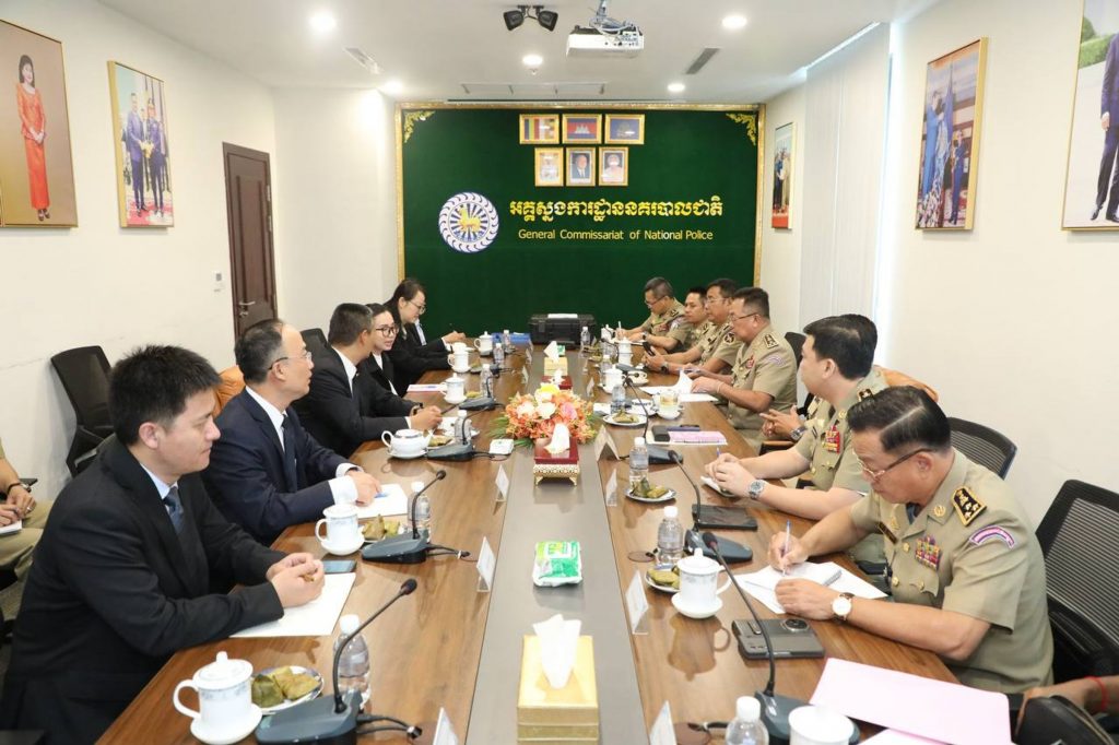 ភ្នំពេញ៖ នៅថ្ងៃព្រហស្បតិ៍ ទី១១ ខែធ្នូ ឆ្នាំ២០២៥ នេះ ឯកឧត្តម នាយឧត្តមសេនីយ៍ ស ថេត អគ្គស្នងការនគរបាលជាតិ បានទទួលជួបសម្ដែងការគួរសម និងពិភាក្សាការងារជាមួយ ឯកឧត្តម យូ សៅវិន (YOU XIAOWEN) អគ្គលេខាធិការ នៃមជ្ឈមណ្ឌលសហប្រតិបត្តិការសន្តិសុខ និងសមាហរណកម្មអនុវត្តច្បាប់(មេគង្គ-ឡានឆាង) LMLECC និងសហការី នៅទីស្តីការក្រសួងមហាផ្ទៃ។