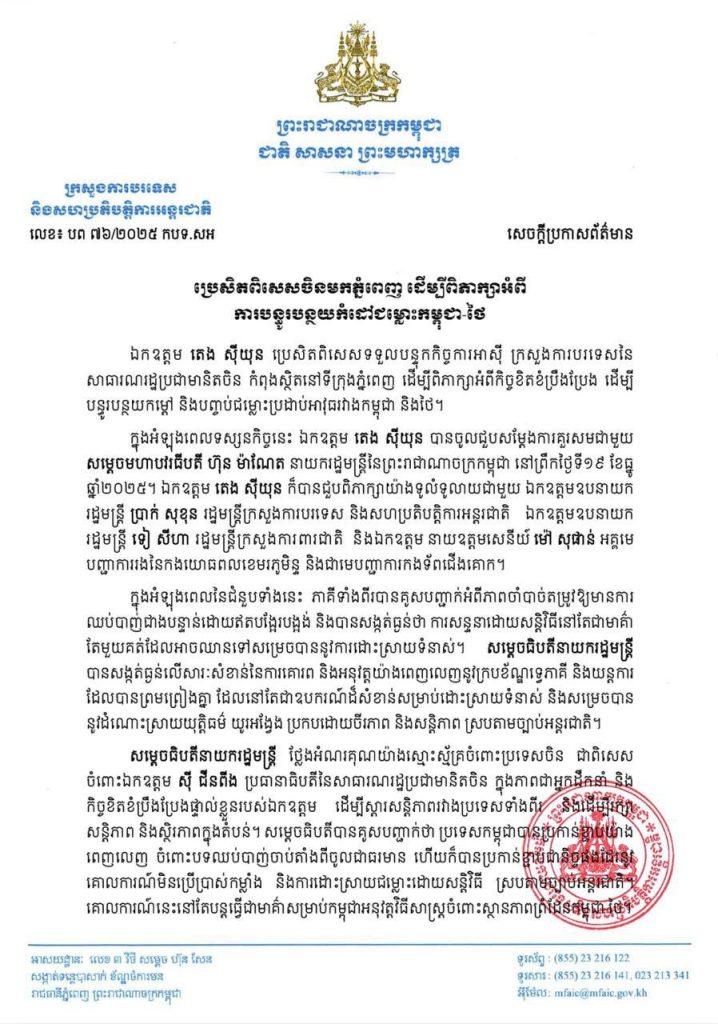ព័ត៌មានទូទៅ ឯកឧត្តម តេង ស៊ីយុន ប្រេសិតពិសេសទទួលបន្ទុកកិច្ចការអាស៊ី ក្រសួងការបរទេសនៃសាធារណរដ្ឋប្រជាមានិតចិន កំពុងស្ថិតនៅទីក្រុងភ្នំពេញ ដើម្បីពិភាក្សាអំពីកិច្ចខិតខំប្រឹងប្រែង ដើម្បីបន្ធូរបន្ថយកម្តៅ និងបញ្ចប់ជម្លោះប្រដាប់អាវុធរវាងកម្ពុជា និងថៃ ។ 4 weeks ago29 Views1 Min Read debugtech.info@gmail.com Add Comment Share This! FacebookXPinterestLinkedIn You may also like ព័ត៌មានទូទៅ មន្ទីរទេសចរណ៍រាជធានី ខេត្តទាំង២៥ ប្តេជ្ញាចូលរួមជំរុញផ្សព្វផ្សាយ និងរៀបចំព្រឹត្តិការណ៍ទេសចរណ៍ក្នុងឆ្នាំ២០២៦ ឱ្យកាន់តែផុលផុស ដើម្បីទាក់ទាញភ្ញៀវទេសចរជាតិ និងអន្តរជាតិ ជាពិសេសការបង្កើនសមត្ថភាព និងជំនាញវិជ្ជាជីវៈរបស់មន្ត្រី ដើម្បីលើកកម្ពស់គុណភាពសេវាទេសចរណ៍ និងការអភិវឌ្ឍវិស័យទេសចរណ៍ឱ្យកាន់តែមានប្រសិទ្ធភាព 5 days ago ព័ត៌មានទូទៅ ថ្ងៃទី៨ ខែមករា ឆ្នាំ២០២៦ លោកជំទាវបណ្ឌិតសភាចារ្យ ភឿង សកុណា បានអញ្ជើញអមដំណើរសម្ដេចកិត្តិសង្គហបណ្ឌិត ម៉ែន សំអន ជួបសំណេះសំណាល និងចែកអំណោយជូនដល់ជនភៀសសឹកព្រមទាំងក្រុមគ្រួសារវីកងទ័ព និងវីរនគរបាល នៅស្រុករមាសហែក ខេត្តស្វាយរៀង 6 days ago ព័ត៌មានទូទៅ (ភ្នំពេញ)៖ ថ្ងៃអង្គារ ទី៦ ខែមករា ឆ្នាំ២០២៦នេះអ្នកជំនួញដ៏ល្បាញល្បីរបស់ចិន អ្នកឧកញ៉ា ចេនហ្ស៊ី និងបក្ខពួក២នាក់ ត្រូវបានសមត្ថកិច្ចកម្ពុជាចាប់ខ្លួន និងបញ្ជូនទៅប្រទេសចិន 1 week ago About the authorView All Posts debugtech.info@gmail.com Add Comment Click here to post a comment Cancel replyCommentName * Email * Website Save my name, email, and website in this browser for the next time I comment. ឯកឧត្តម អ៊ូ រតនា ប្រធានសហព័ន្ធកីឡាវ៉ូវីណាមកម្ពុជា បានដឹកនាំប្រតិភូ គ្រូបង្វឹក កីឡាករ-កីឡាការិនី រួមជាមួយសប្បុរសជន នាំយកជំនួយសប្បុរសធម៌ ដែលទទួលបានពីការបរិច្ចាគសប្បុរសជននានា ប្រគល់ជូនក្រុមការងារចុះជួយស្រុកព្រះនេត្រព្រះ អត្ដពលិក គ្រូបង្វឹក និងមន្ដ្រីកីឡាកម្ពុជា ចូលរួមដើរដើម្បីសន្ដិភាព Comment Share This! FacebookXPinterestLinkedIn Topics Uncategorized8 កំសាន្ត1 ព័ត៌មានកីឡា14 ព័ត៌មានទូទៅ64 ព័ត៌មានសង្គម3 Featured ព័ត៌មានទូទៅ មន្ទីរទេសចរណ៍រាជធានី ខេត្តទាំង២៥ ប្តេជ្ញាចូលរួមជំរុញផ្សព្វផ្សាយ និងរៀបចំព្រឹត្តិការណ៍ទេសចរណ៍ក្នុងឆ្នាំ២០២៦ ឱ្យកាន់តែផុលផុស ដើម្បីទាក់ទាញភ្ញៀវទេសចរជាតិ និងអន្តរជាតិ ជាពិសេសការបង្កើនសមត្ថភាព និងជំនាញវិជ្ជាជីវៈរបស់មន្ត្រី ដើម្បីលើកកម្ពស់គុណភាពសេវាទេសចរណ៍ និងការអភិវឌ្ឍវិស័យទេសចរណ៍ឱ្យកាន់តែមានប្រសិទ្ធភាព ព័ត៌មានទូទៅ ថ្ងៃទី៨ ខែមករា ឆ្នាំ២០២៦ លោកជំទាវបណ្ឌិតសភាចារ្យ ភឿង សកុណា បានអញ្ជើញអមដំណើរសម្ដេចកិត្តិសង្គហបណ្ឌិត ម៉ែន សំអន ជួបសំណេះសំណាល និងចែកអំណោយជូនដល់ជនភៀសសឹកព្រមទាំងក្រុមគ្រួសារវីកងទ័ព និងវីរនគរបាល នៅស្រុករមាសហែក ខេត្តស្វាយរៀង ព័ត៌មានទូទៅ (ភ្នំពេញ)៖ ថ្ងៃអង្គារ ទី៦ ខែមករា ឆ្នាំ២០២៦នេះអ្នកជំនួញដ៏ល្បាញល្បីរបស់ចិន អ្